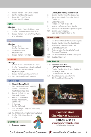 30: Christmas in Comfort Arts & Crafts Festival, Chamber of Commerce