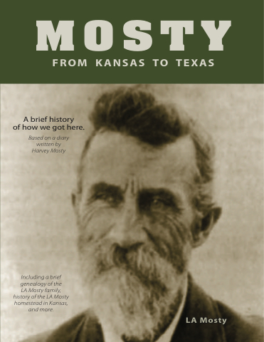 Including a brief genealogy of the LA Mosty family, history of the LA Mosty homestead in Kansas, and more.