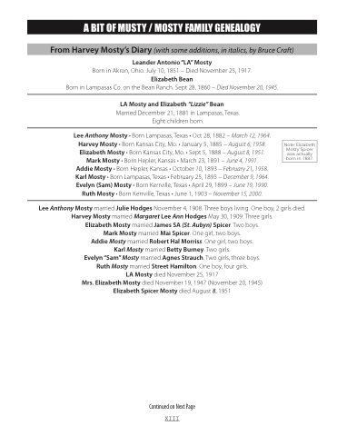 Lee Anthony Mosty • Born Lampasas, Texas • Oct 28, 1882 – March 12, 1964 Harvey Mosty • Born Kansas City, Mo • January 5, 1885 – August 6, 1958 Elizabeth Mosty • Born Kansas City, Mo • Sept 5, 1888 – August 8, 1951 Mark Mosty • Born Hepler, Kansas • March 23, 1891 – June 4, 1991 Addie Mosty • Born Hepler, Kansas • October 10, 1893 – February 21, 1958 Karl Mosty • Born Lampasas, Texas • February 25, 1895 – December 9, 1964 Evelyn (Sam) Mosty • Born Kerrville, Texas • April 29, 1899 – June 19, 1990 Ruth Mosty • Born Kerrville, Texas • June 1, 1903 – November 15, 2000