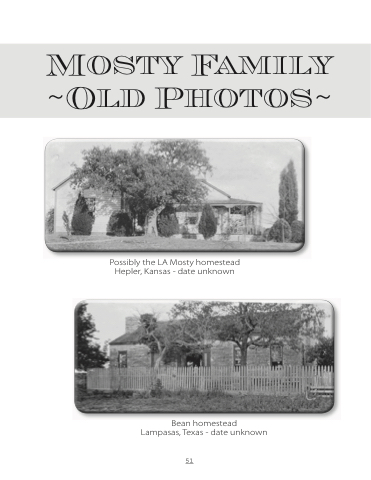 Mosty Family ~Old Photos~ Possibly the LA Mosty homestead Hepler, Kansas - date unknown Bean homestead Lampasas, Texas - date unknown 51