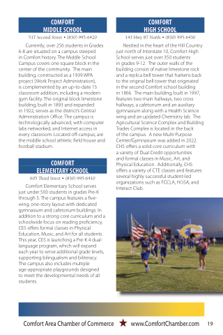 Nestled in the heart of the Hill Country just north of Interstate 10, Comfort High School serves just over 350 students