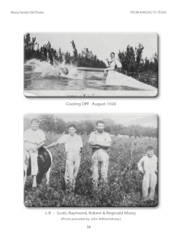 Mosty Family Old Photos FROM KANSAS TO TEXAS Cooling O ! August 1920 L-R - Scott, Raymond, Robert & Reginald Mosty (Photo provided by John Milford Mosty) 56
